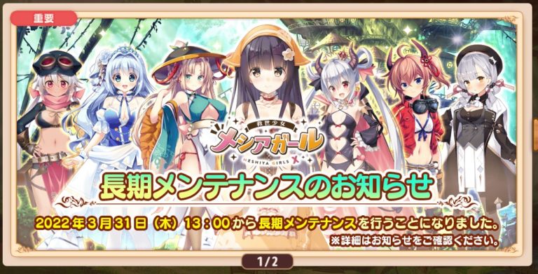 メシアガール 長期メンテへ 2022年3月31日13時から