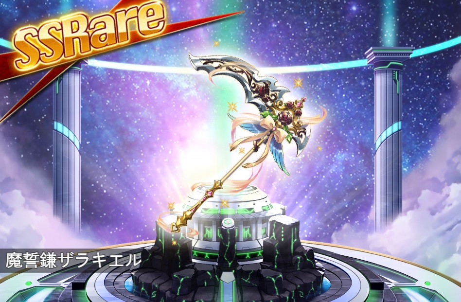 華やかな黒薔薇をあしらった、鋭いトゲを持つ鎌。 使い手の真摯な愛情に力を与え、まばゆい光の刃で未来を照らす。