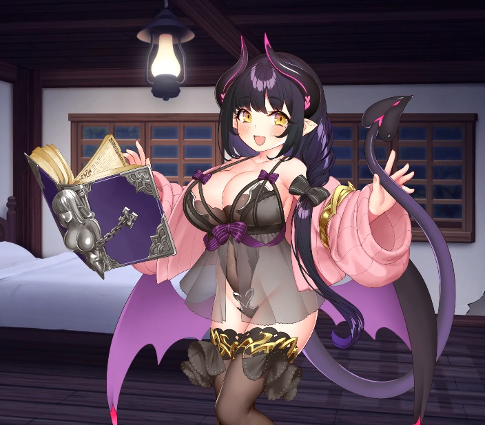 淫力を高める石の効果により、夜の女王へと進化したリリス娘。「お姉さんとして艶が大切」とペントが開発したGストーンを部屋に置いて生活していたことで、この姿となったらしい。以前とは嗜好も変わったらしく、甘えさせるよりも嫌がる相手をお仕置きするというSなプレイが好きになったようだ。バストもサイズもアップしたらしいが、真相は定かではない。