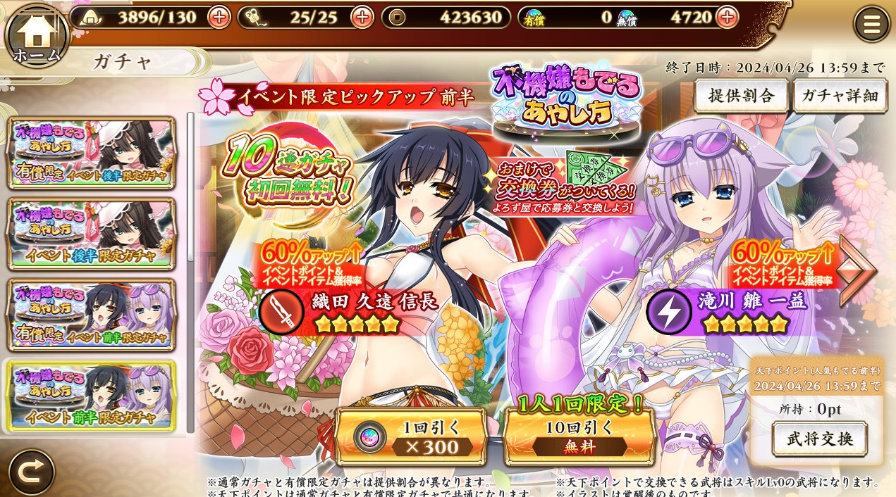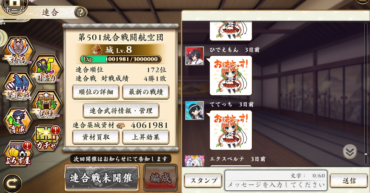 連合172位。 あんまり人気の無い戦国恋姫ですが意外とユーザー多いようです。