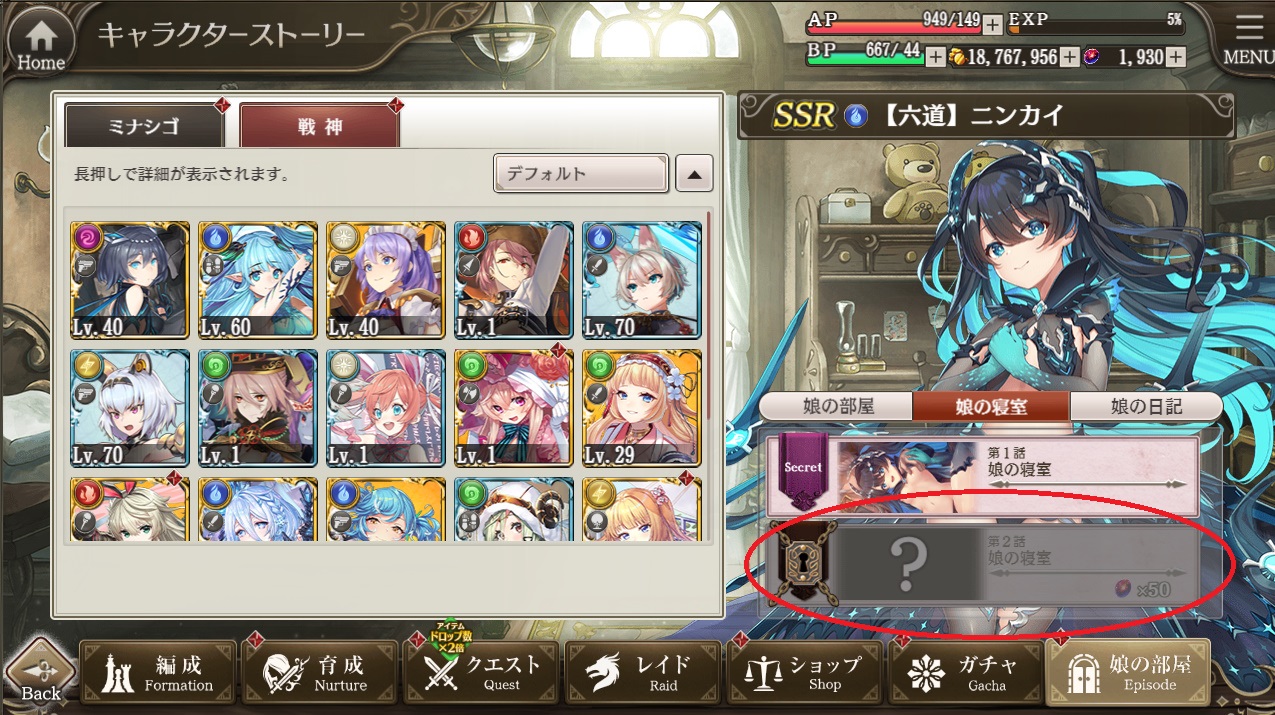 2024年2月に寝室2話が開放されていないと上記で書いた。レベル85になれば見れる筈。