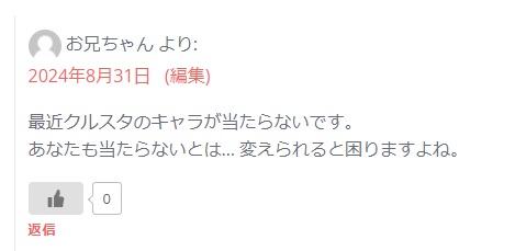この返答してなかったけど、クルスタ当たらなくても全然困らないです。