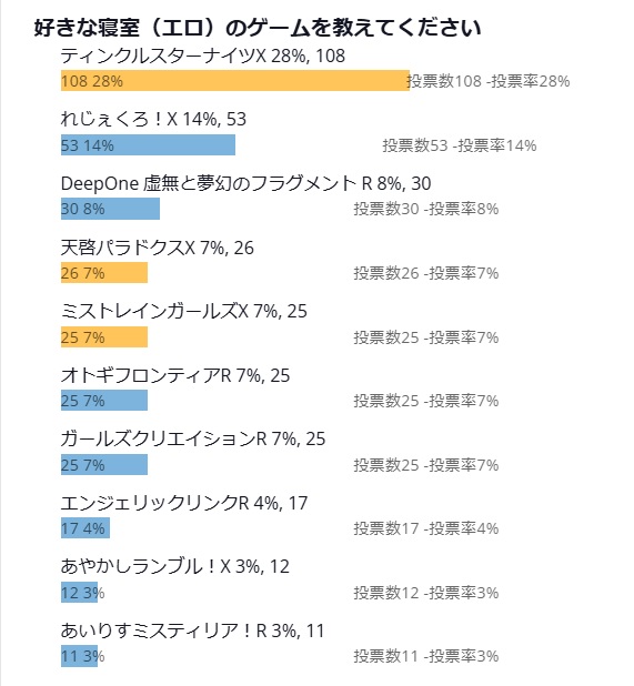 れじぇくろ!の記事はあんまり書いてないのに2位になっているのは、クルスタとれじぇくろ!どちらもプレイしているので票が伸びて2位なっている。