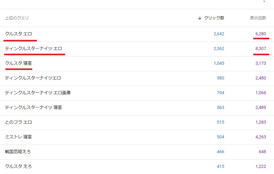クルスタはグーグルコンソールでも全体の検索数は多いです。