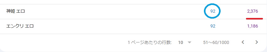 「神姫エロ」の場合 グーグルで92回しかクリックされてない。