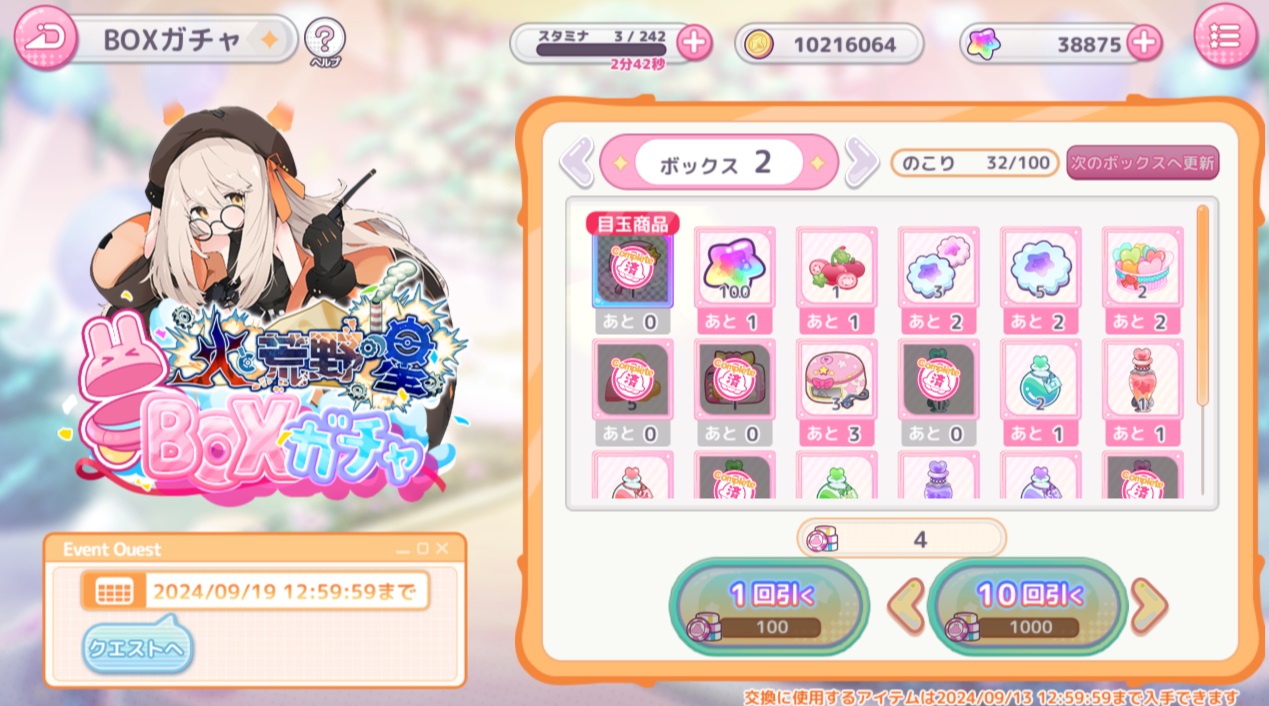 前回のボックスガチャもそうだけど、途中からアイテムがドロップせずガチャを引けない。