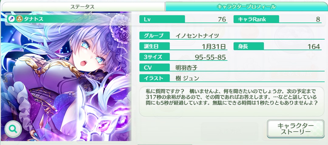 クロノスの掲載要望ですがその時のガチャを知りませんでした。フェス限定みたいです。タナトスは最近プレミアムガチャで当たったのでこちら掲載します。