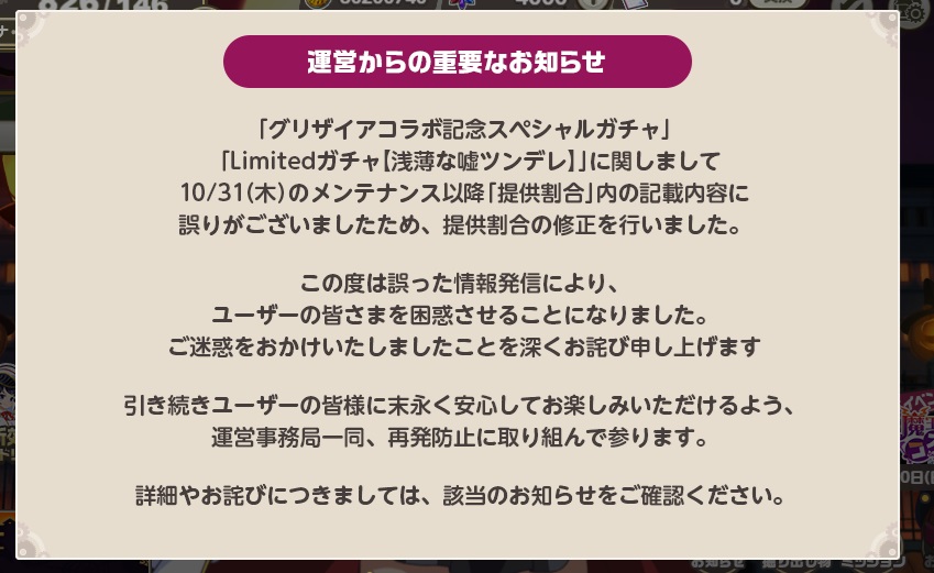 SSミチルガチャで誤表示がありました。