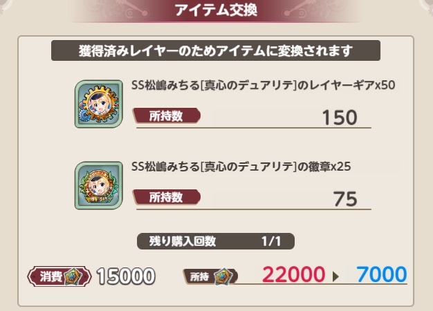 ガチャメダル15000でSS松島みちると交換できますので、SSみちる無料配布となります。