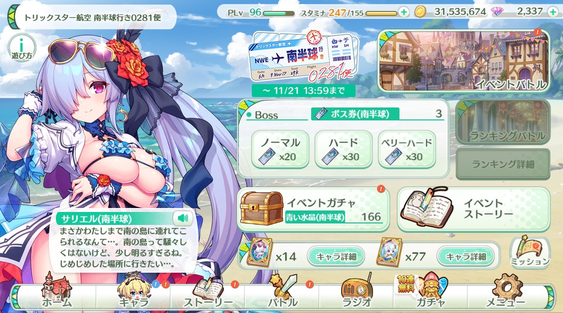 2024年11月イベント配布キャラです。サリエルが報酬とはお得です。