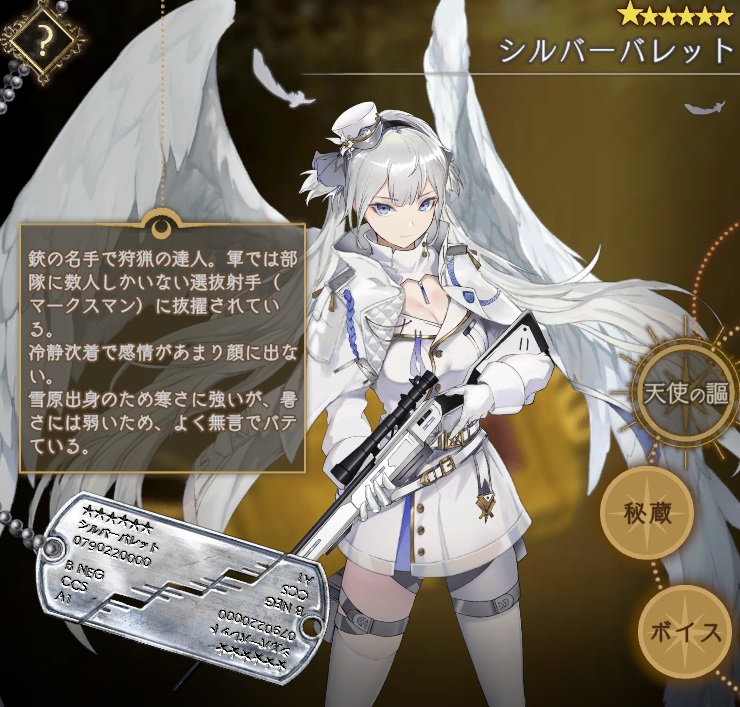 銃の名手で狩猟の達人。軍では部隊に数人しかいない選抜射手(マークスマン)に抜擢されている。