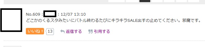 公式コミュで何度も意見あがってるのに聞かない運営