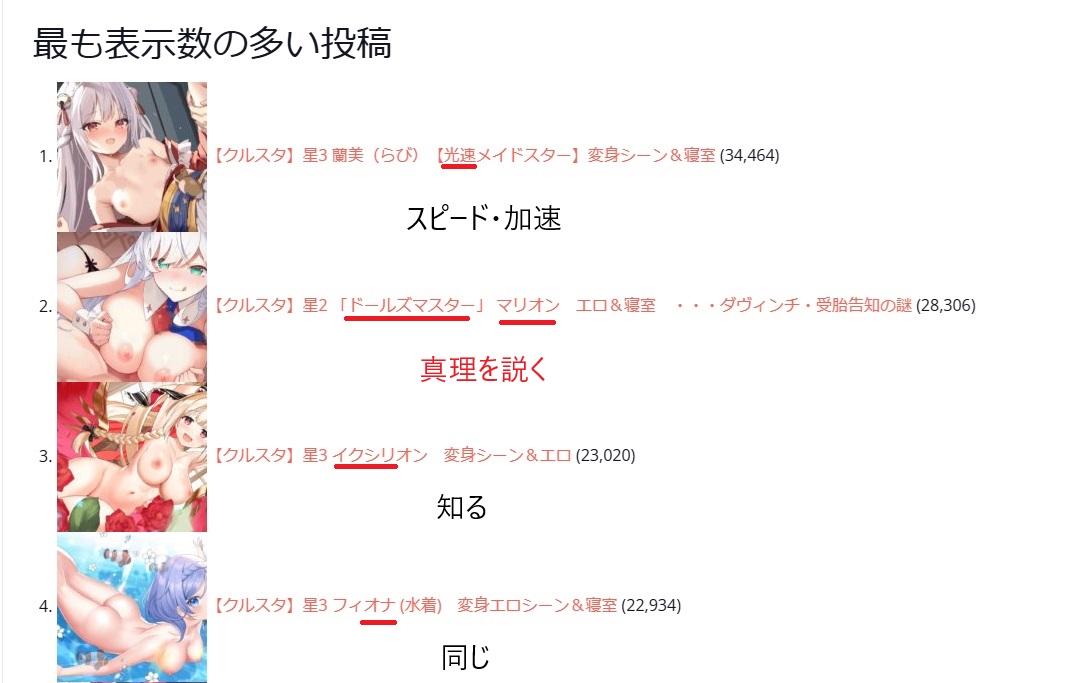 片仮名だと「ドウ」=同じ 「トク」解く、得く、徳く、説く
