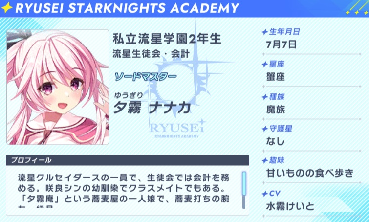 流星クルセイダースの一員で、生徒会では会計を務める。咲良シンの幼馴染でクラスメイトでもある。