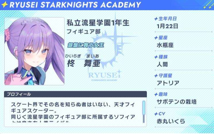 同じく流星学園のフィギュア部に所属するソフィアとは良き友人兼ライバル。