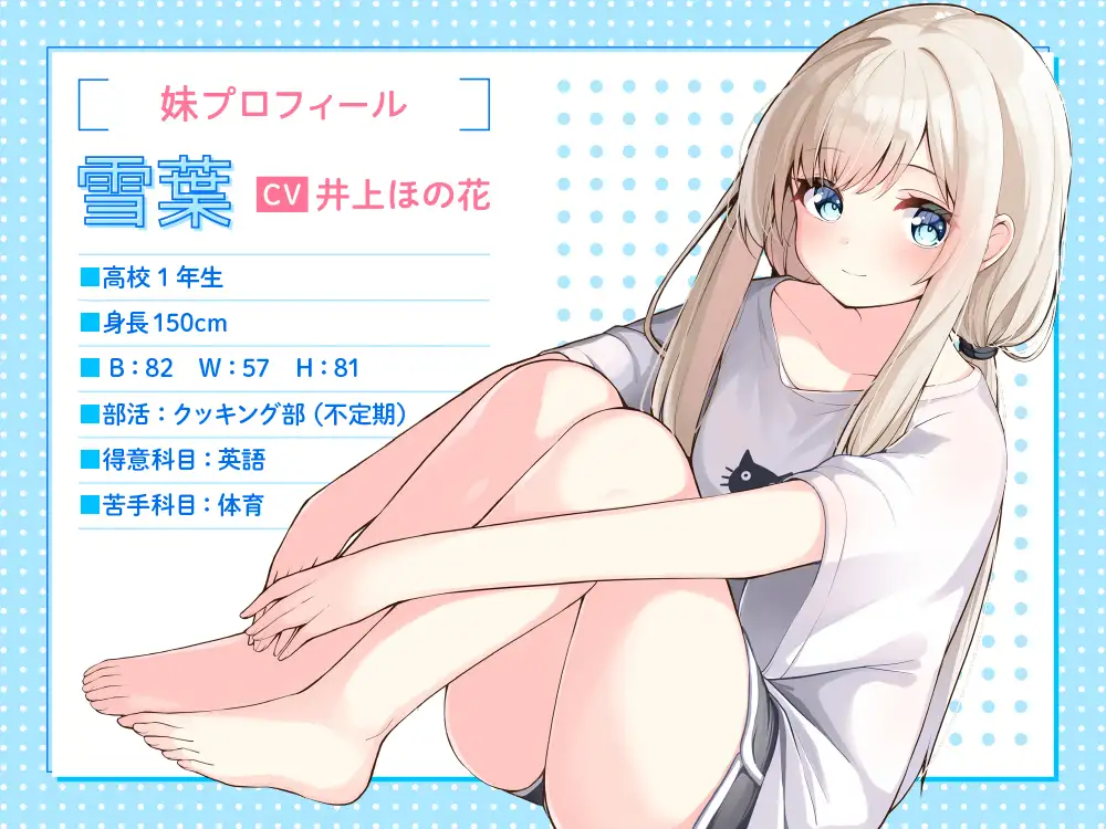 一見クールだけど、お兄ちゃんのことが大好きな甘えたがりな妹との、吐息がかかるほどの距離の生活をお楽しみ下さい。