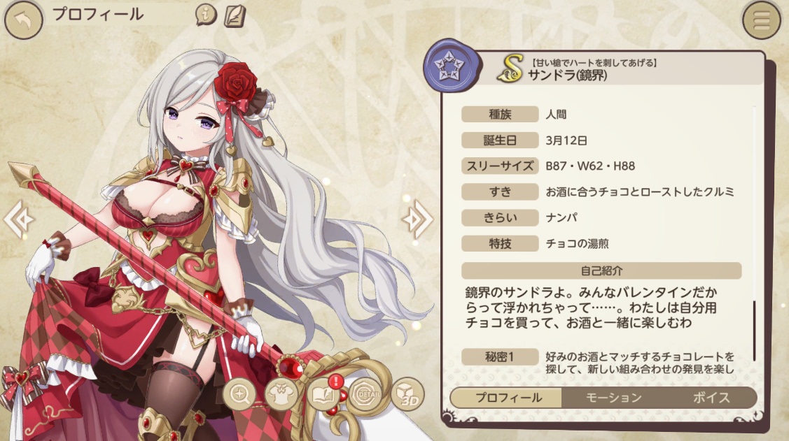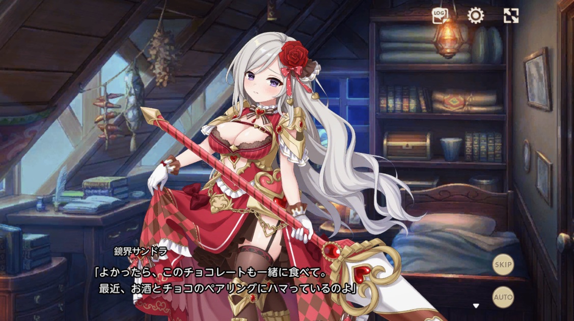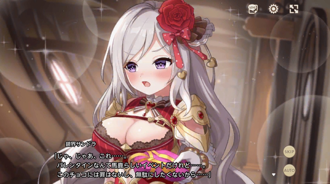 鏡界のサンドラよ。 みんなバレンタインだからって浮かれちゃって。 わたしは自分用チョコを買って、お酒と一緒に楽しむわ