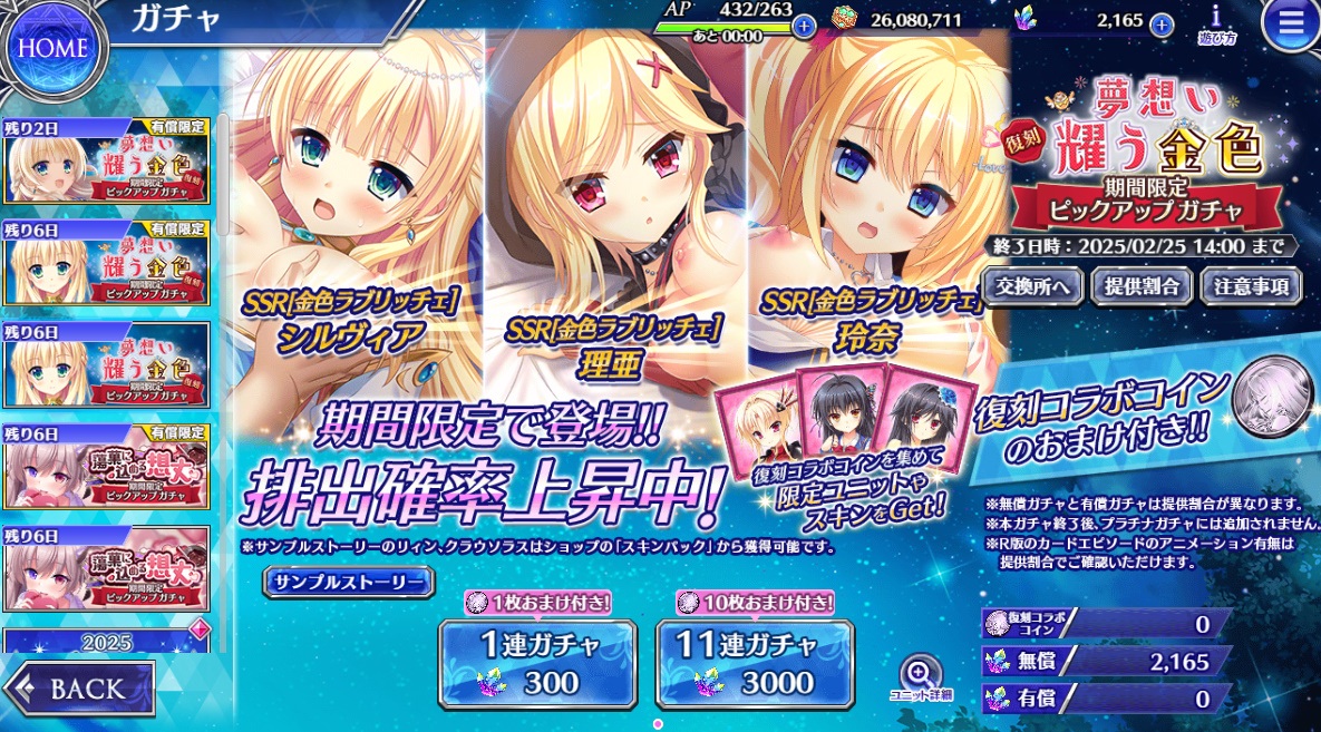 今回復刻コラボですけど、以前ミストレとのコラボの時はシルヴィアと玲奈が当たりました。