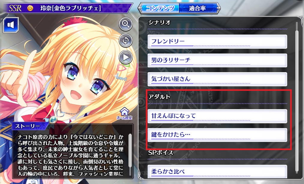 虚無(ゼロ)と夢幻のフラグメント(とのフラ)今回はSSR【金色ラブリッチェ】玲奈の寝室・エロシーンです。