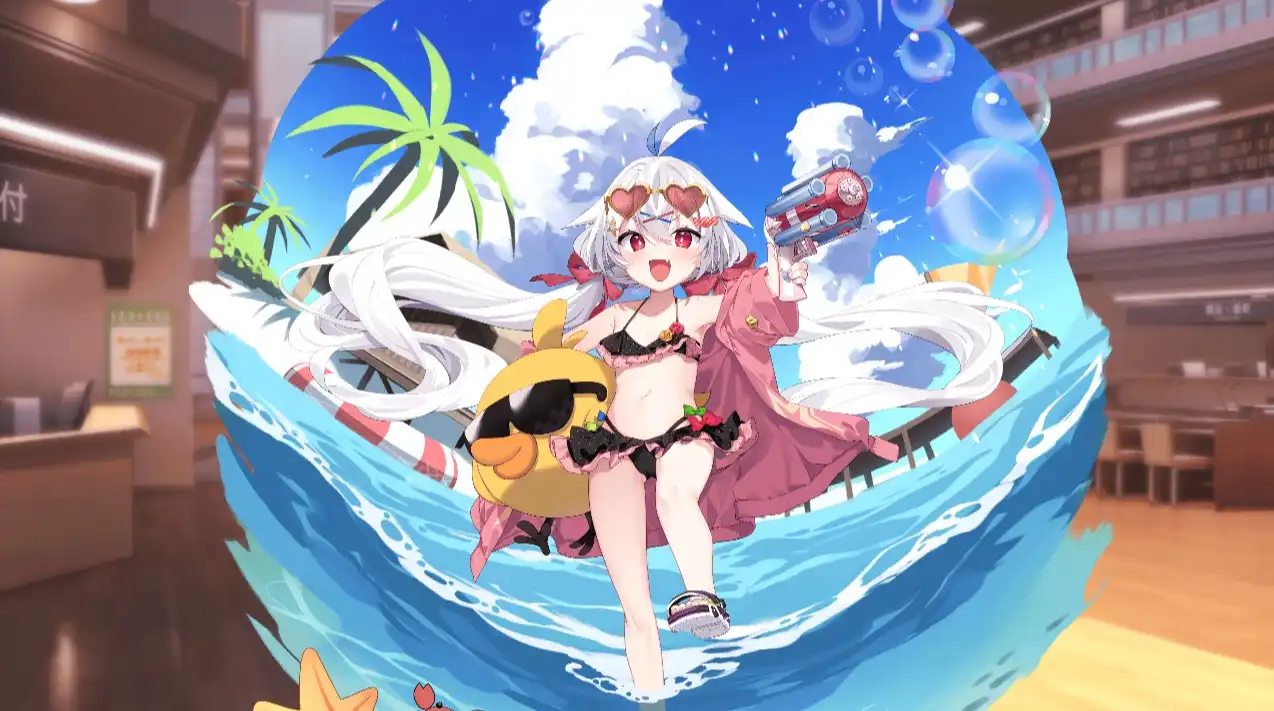 水着に着替えて大はしゃぎのアポロ。リクリエの影響で長い眠りについていたため、目覚めてから初めての海にわくわくしている。