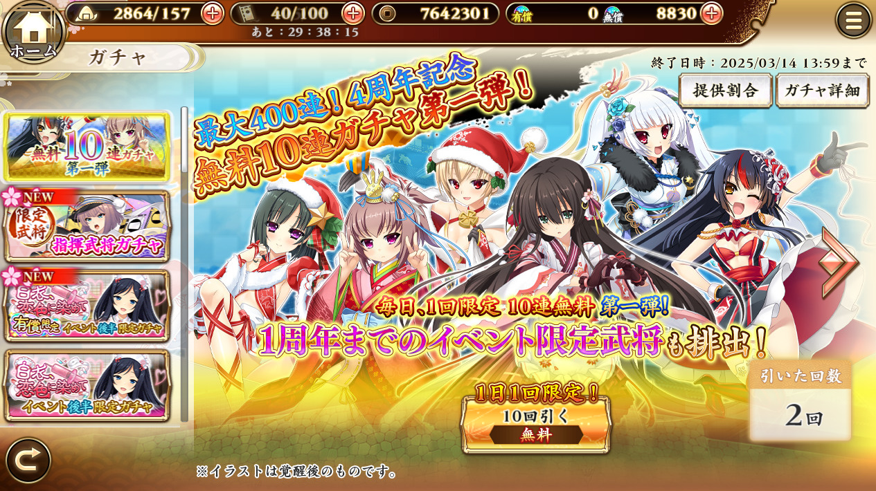 4周年記念無料ガチャが開催中