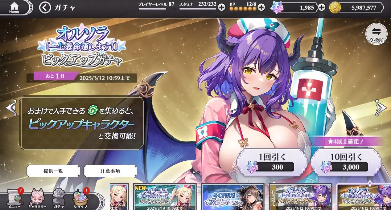 久しぶり星5が当たったけど、巨乳すぎ(爆乳)。