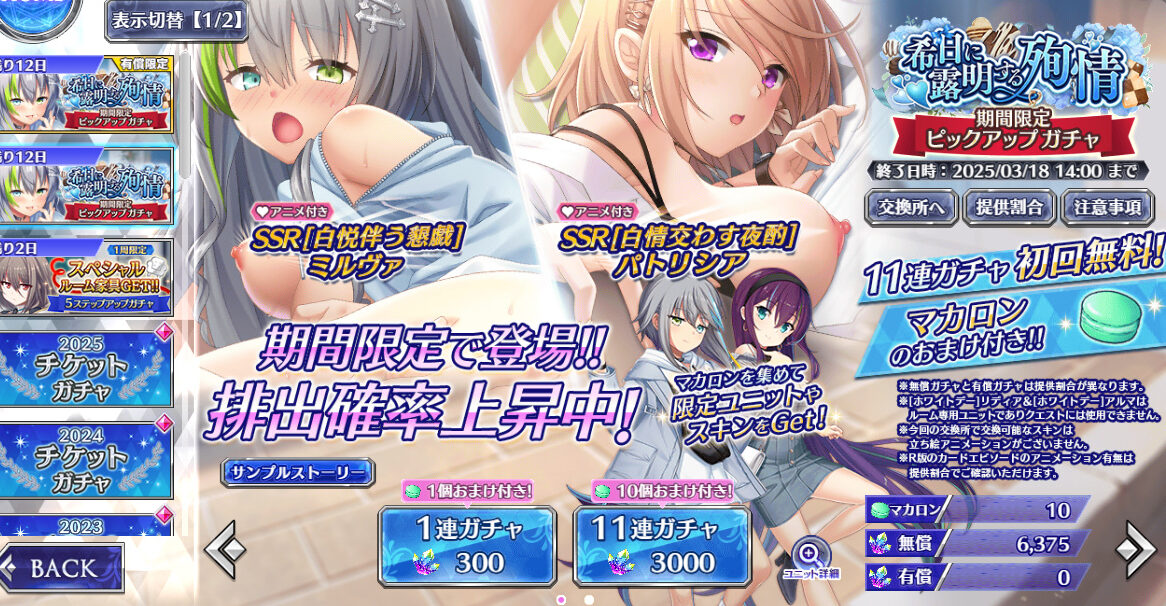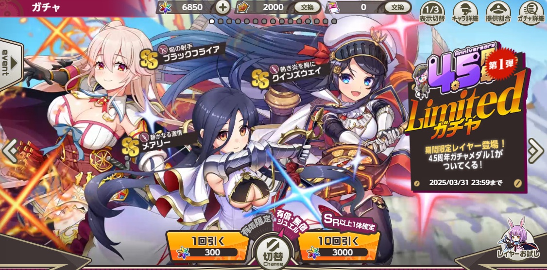 ガチャは最近は当たらないです。特にミストレが当たらなくなりました。