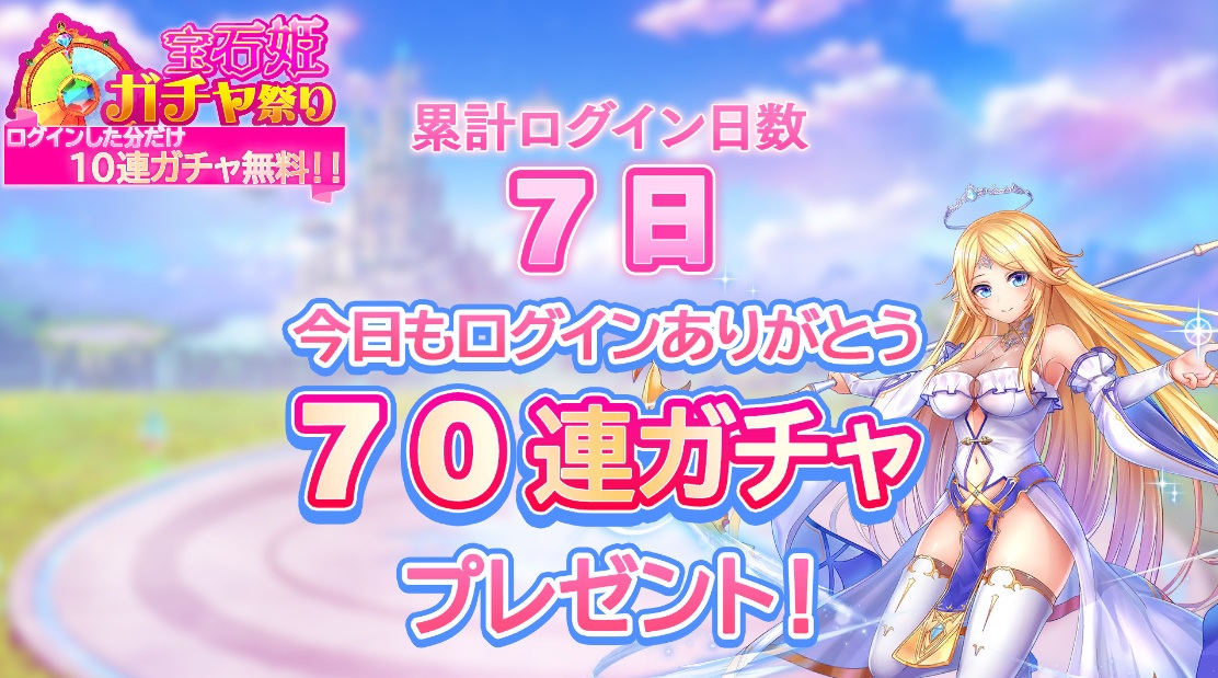 7日ログインすると70連ですね。