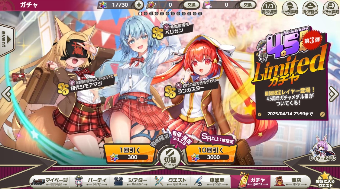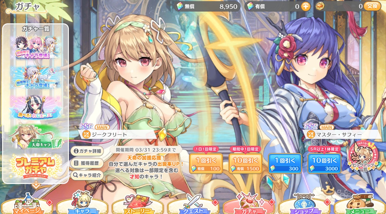 3月はテンパラガチャ好調でした。新ピックアップガチャ2回連続2枚抜き。