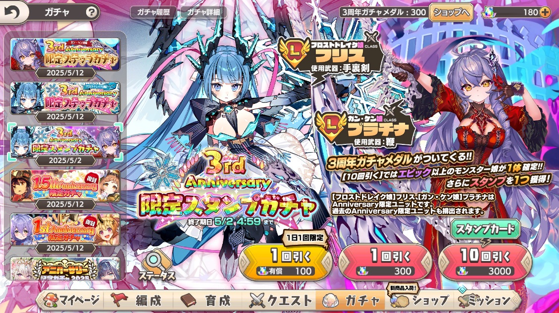 ミストレは石いっぱい貰ったので良かったかな。