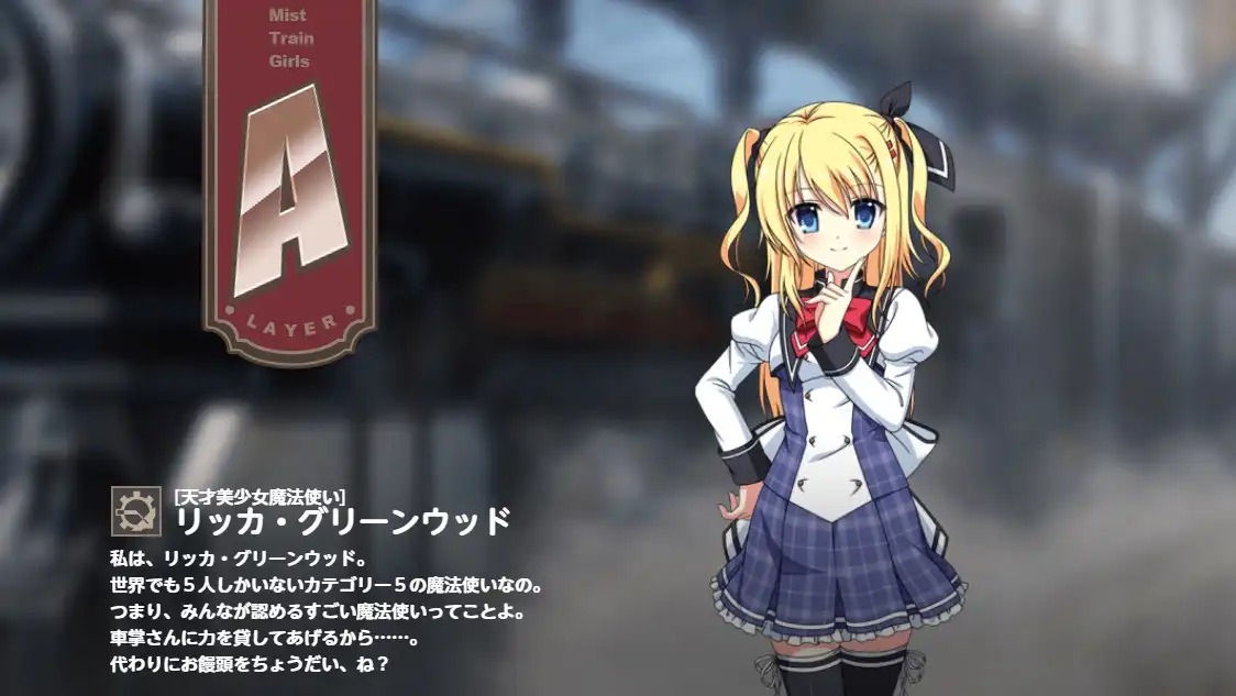 私は、リッカ・グリーンウッド。 世界でも5人しかいないカテゴリー5の魔法使いなの。 つまり、みんなが認めるすごい魔法使いってことよ。 車掌さんに力を貸してあげるから・・・・・・。 代わりにお饅頭をちょうだい、ね?