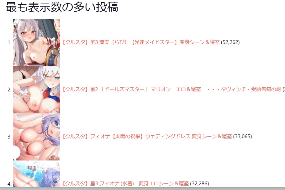 「クルスタ エロ」検索上位なのも理由なんですけど、人気キャラと比例している訳じゃないと思うけど