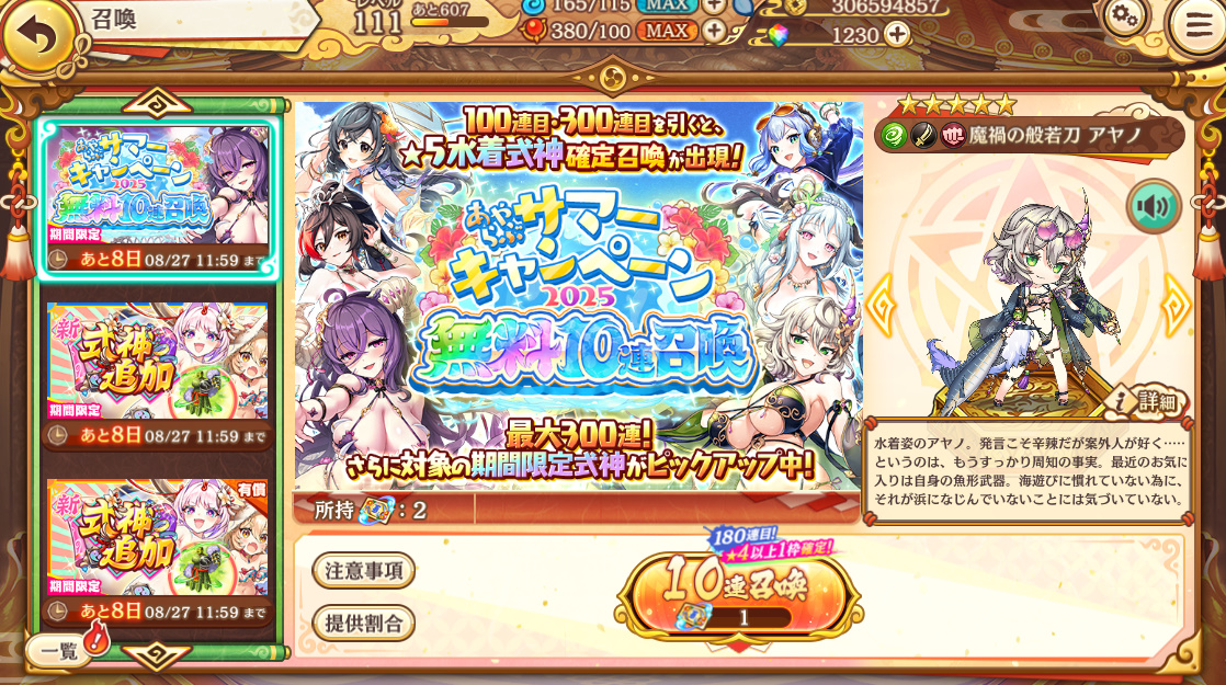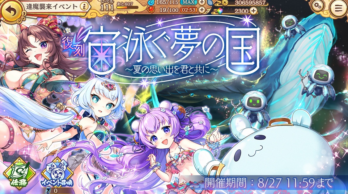 復刻水着イベントをやって10連無料ガチャチケットが貰えます。