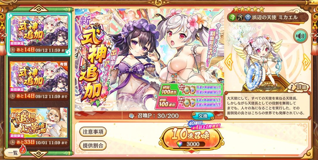 神プロの「星5 夏の眠らせ姫 ヒュプノス」まだ当たってません。