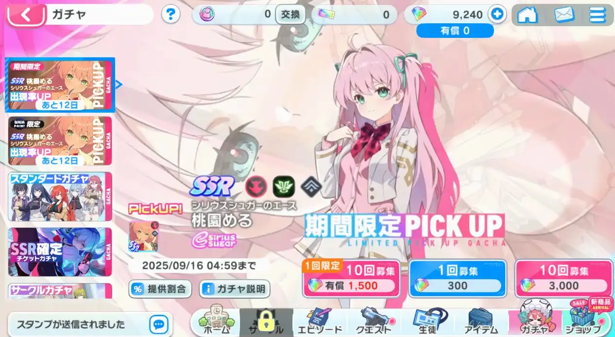 ピックアップのSSRシリウスシュガーのエース桃園めるはまだ当たってない。