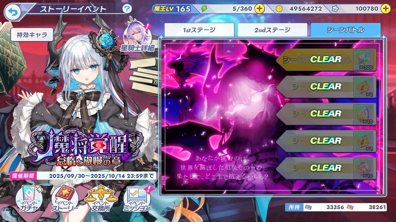 イベント「魔将覚醒・怠惰と傲慢の章」でモネとウィステリアが特効キャラで、後半にリィベルが追加。