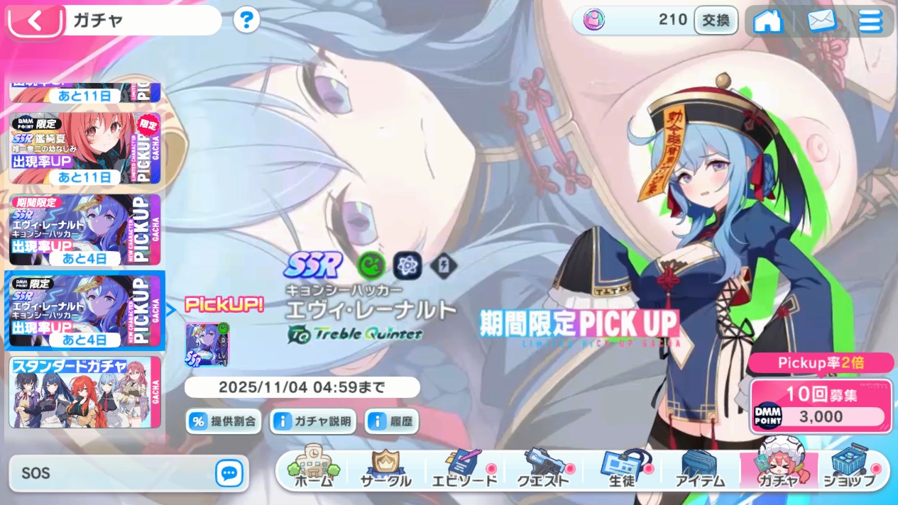 エヴィのハロウィンガチャでも樋向心香は0.1%で排出されます。それでURまでいきました。