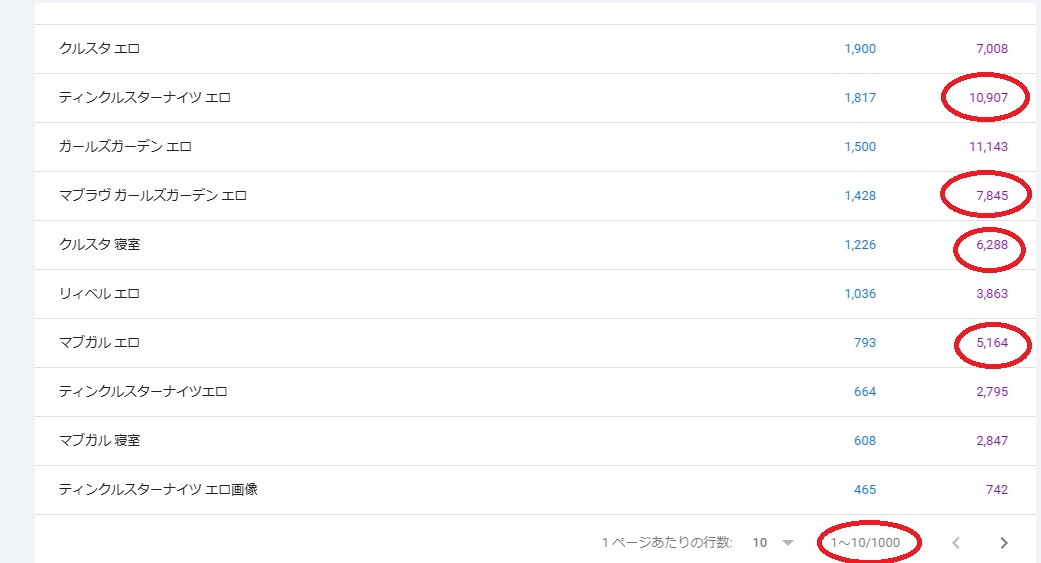 今のトレンドは「クルスタ エロ」「ティンクルスターナイツ エロ」 「ガールズガーデン エロ」とにかく「クルスタ」と「マブガル」にアクセスが集中している。