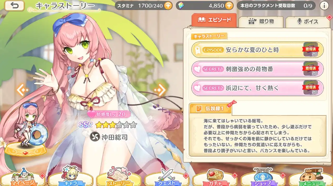 れじぇくろ!~レジェンド・クローバー~R18版です。今回はSSR 沖田総司 (水着) のエロ・寝室シーンです。