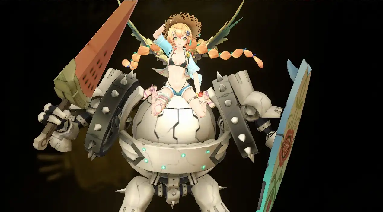 3Dキャラ。ゴーレム(ゴー0(ゼロ))の上に乗ってる