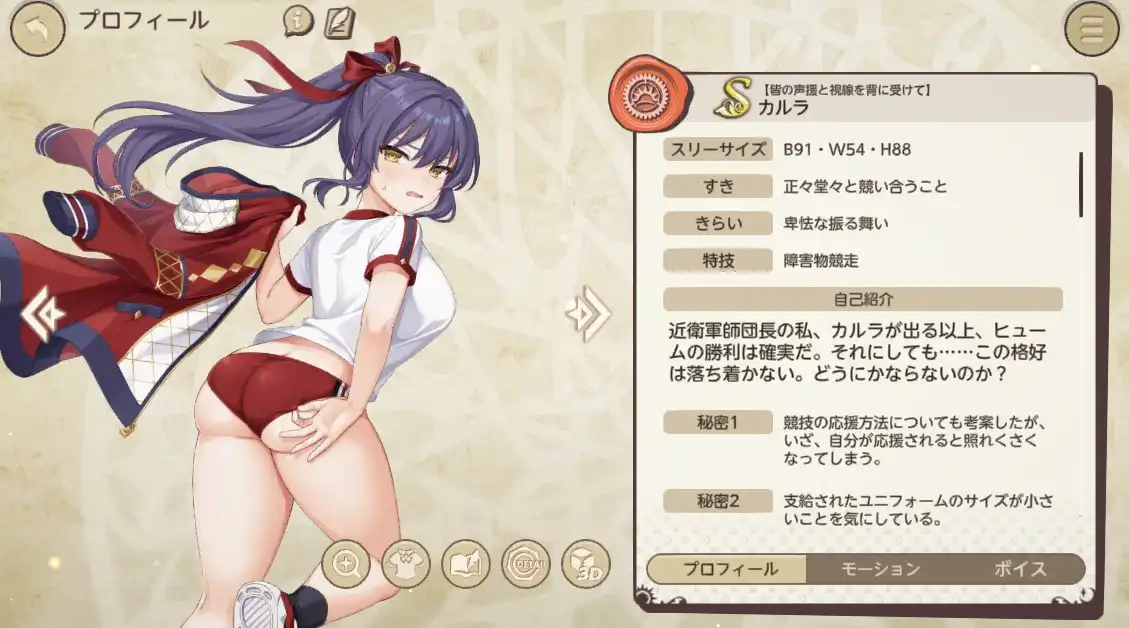 ヒューム出身のカルラは旧式の体操服でスポーツ大会出場です。