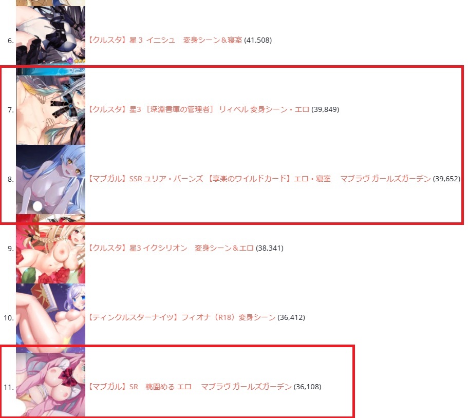 10月はクルスタの「リィベル」がバズったので1位でした。11月は10位以内に5キャラクターが「マブガル」でした。