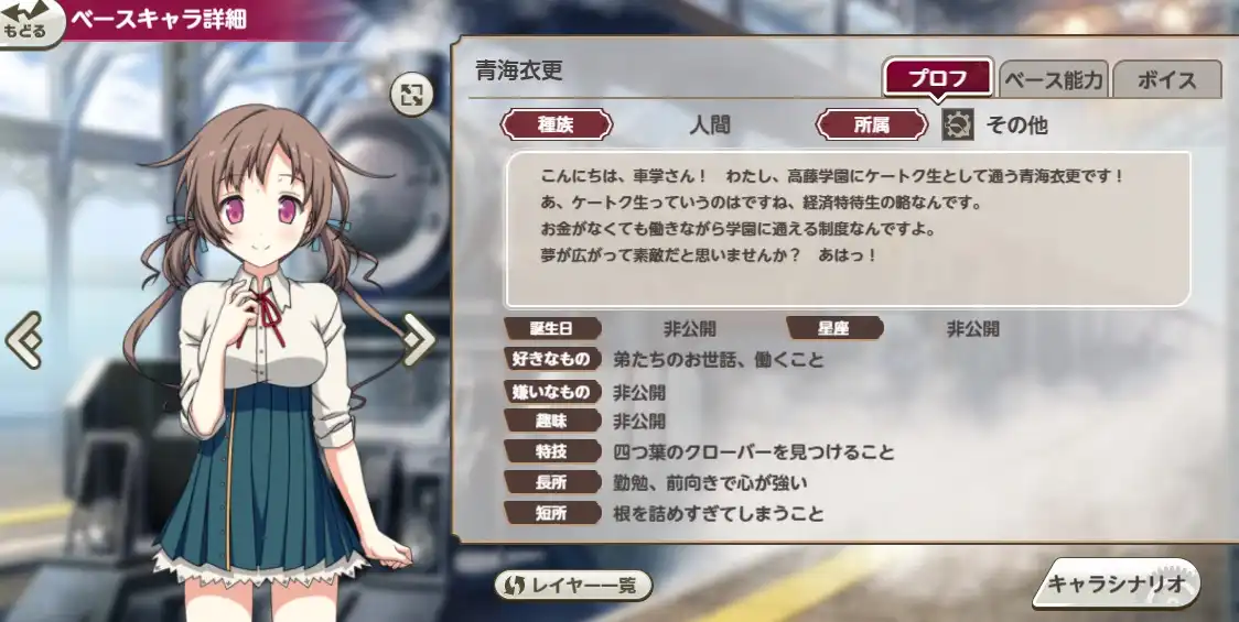 このPCゲームのホーム画面だと「青海衣更(あおみ いさら)」です。