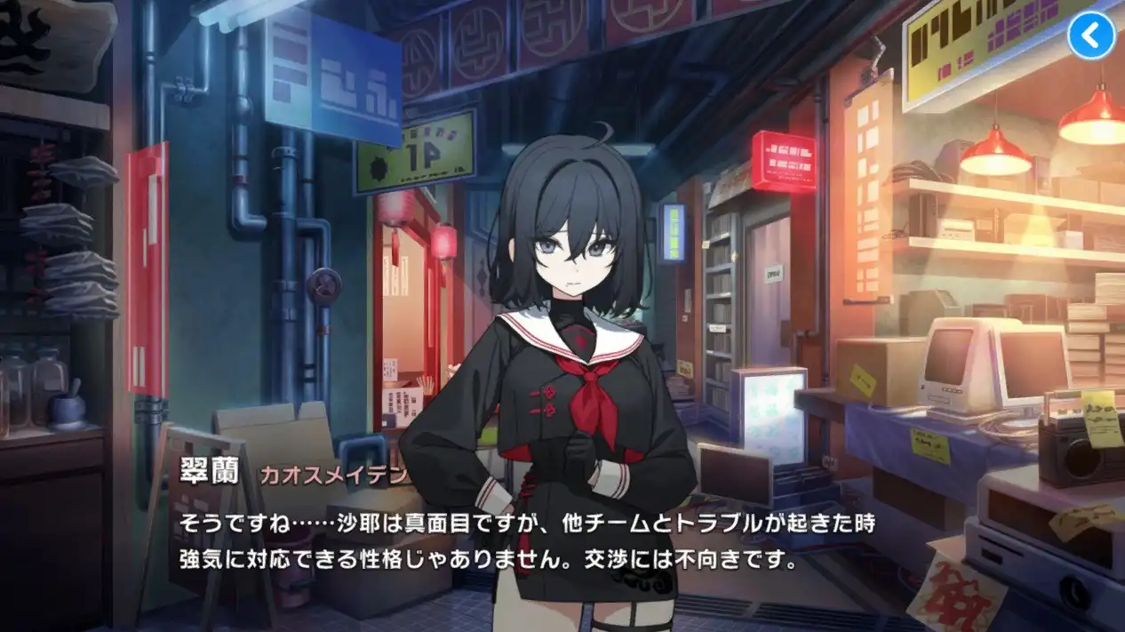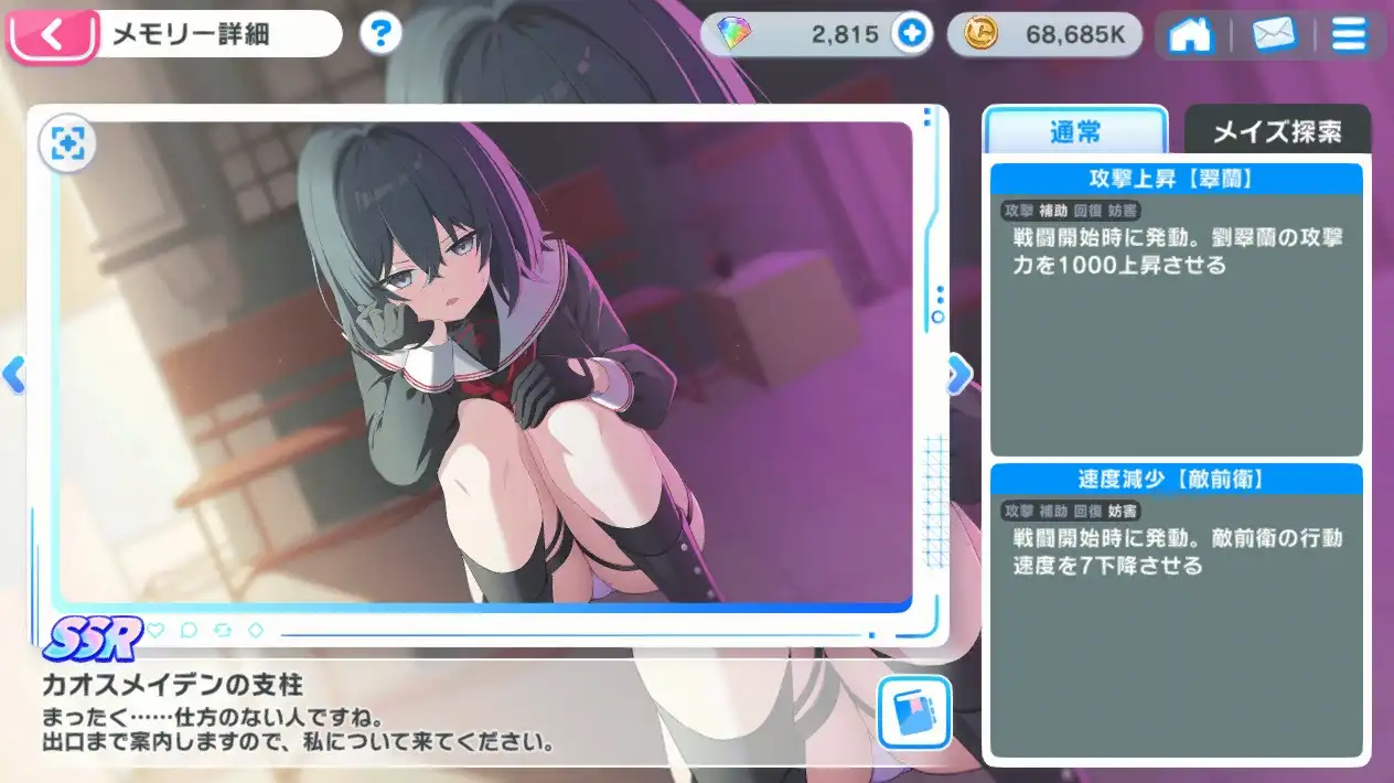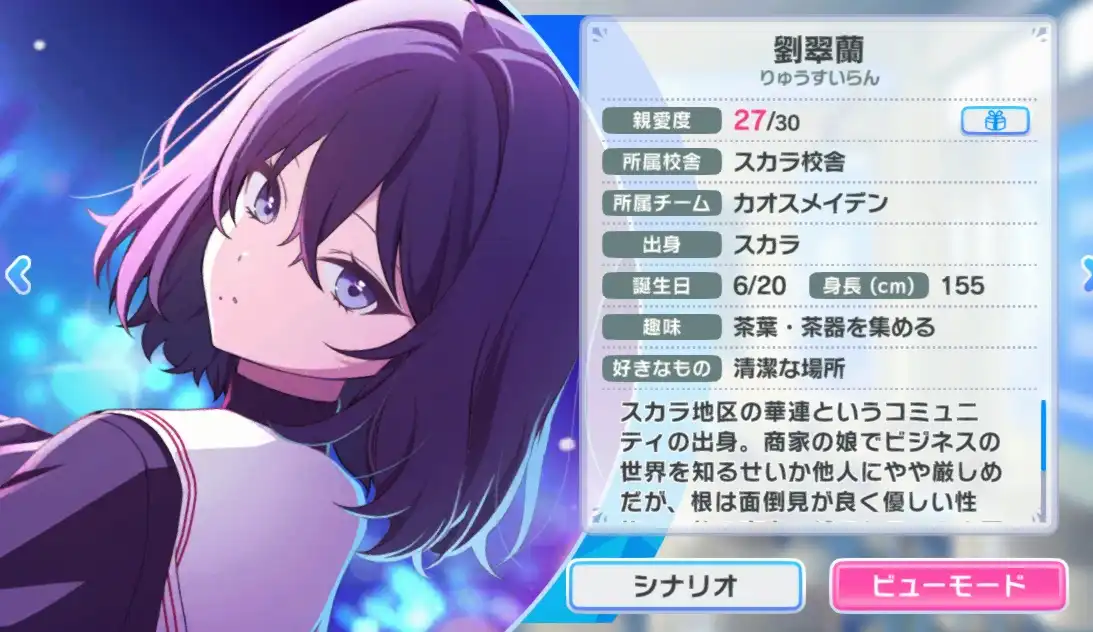 カオスメイデンのまとめ役の劉翠蘭。イベントのSRメモリーの寝室も掲載しています。