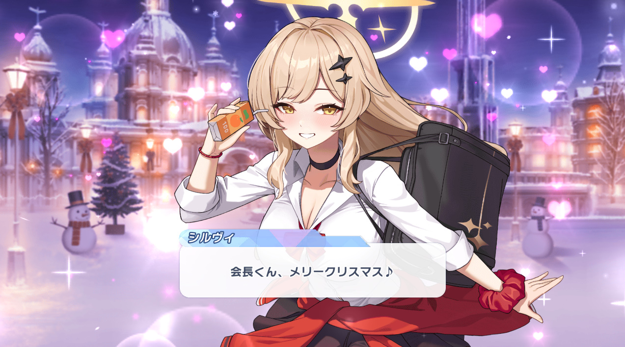 シナリオを読むとクリスマスのメッセージがあります。コラボキャラはないみたい。