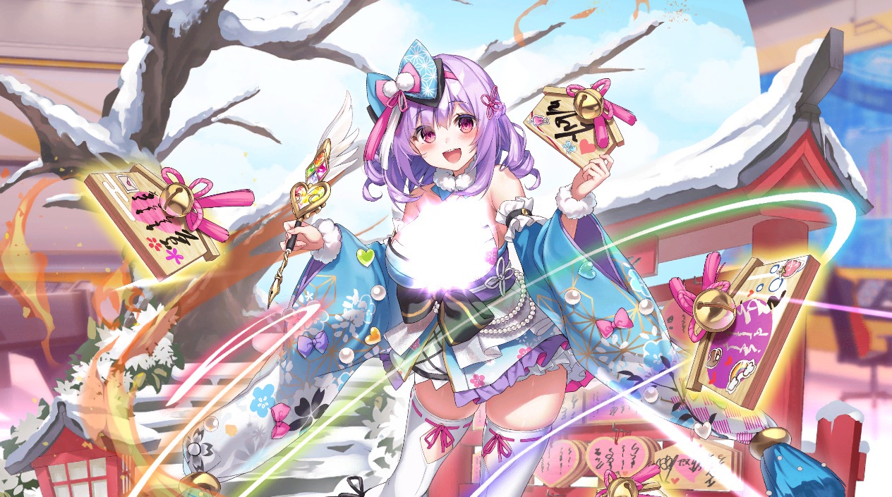 新たな正月を迎え覚醒した、可愛い後輩の『晴れ着フォーム』。 可愛さを前面に押し出した晴れ着で、センパイのハートをマジカル☆狙い撃ちにしようと企む。 能力は『魔弾』から『絵馬』へと変化。 魔力を込めたペンで絵馬に『願いごと』を描くことで、それを魔法として発動することができる。 願いへの想いが強ければ強い程、実現する魔法は強力なものとなる。。