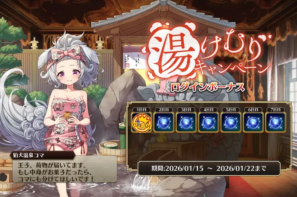 千年戦争アイギスR 2026年湯けむりキャンペーン。星6 狛犬温泉 コマ エロシーンを掲載