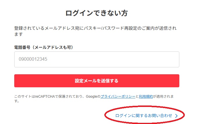 電話番号でもメールアドレスでも無理