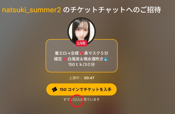 キャスト(女性)によって有料チケットで何人くるか変わりますけどなつきちゃんの場合はコンスタントに20人は来てそう。