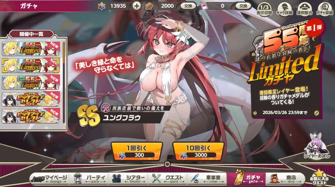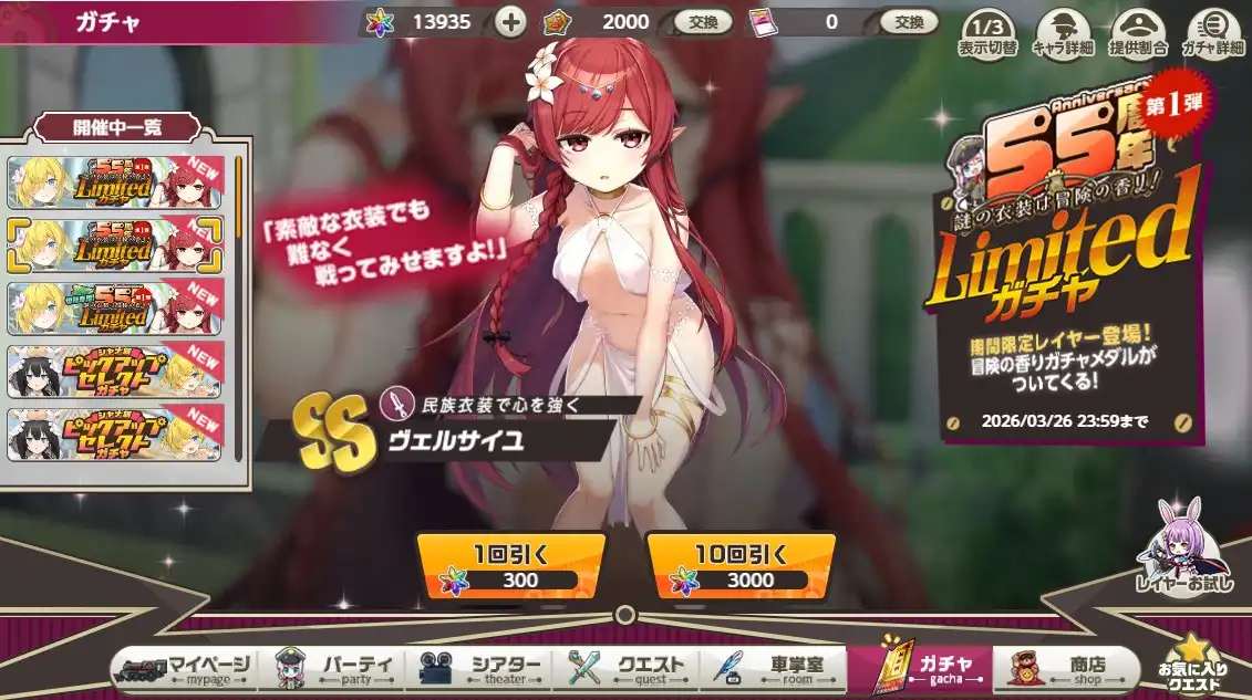 5.5周年第1弾 謎の衣装は冒険の香り!Limitedガチャ 2026/03/14